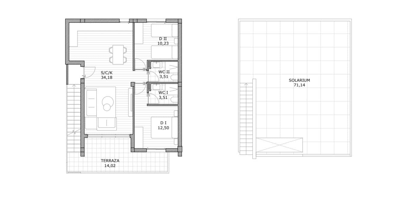 2 Bed 2 Bath Apartment 71m2 Solarium in San Miguel De Salinas