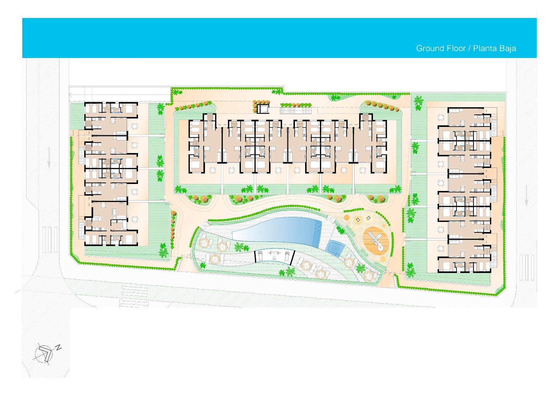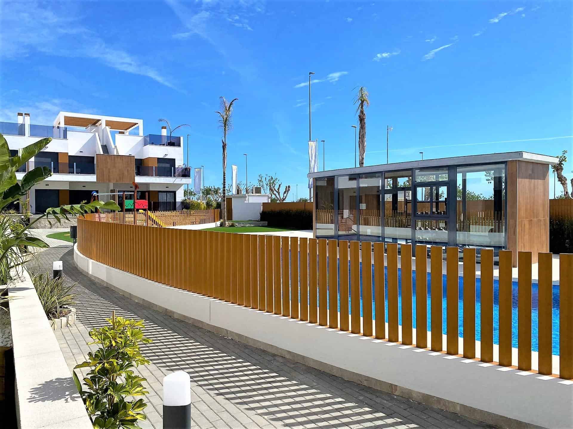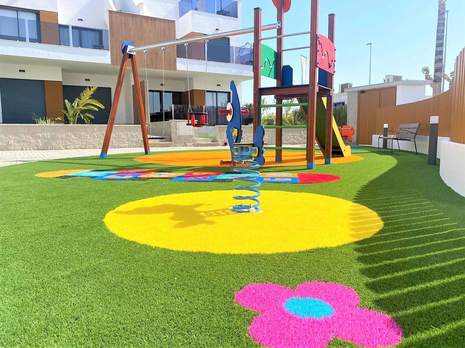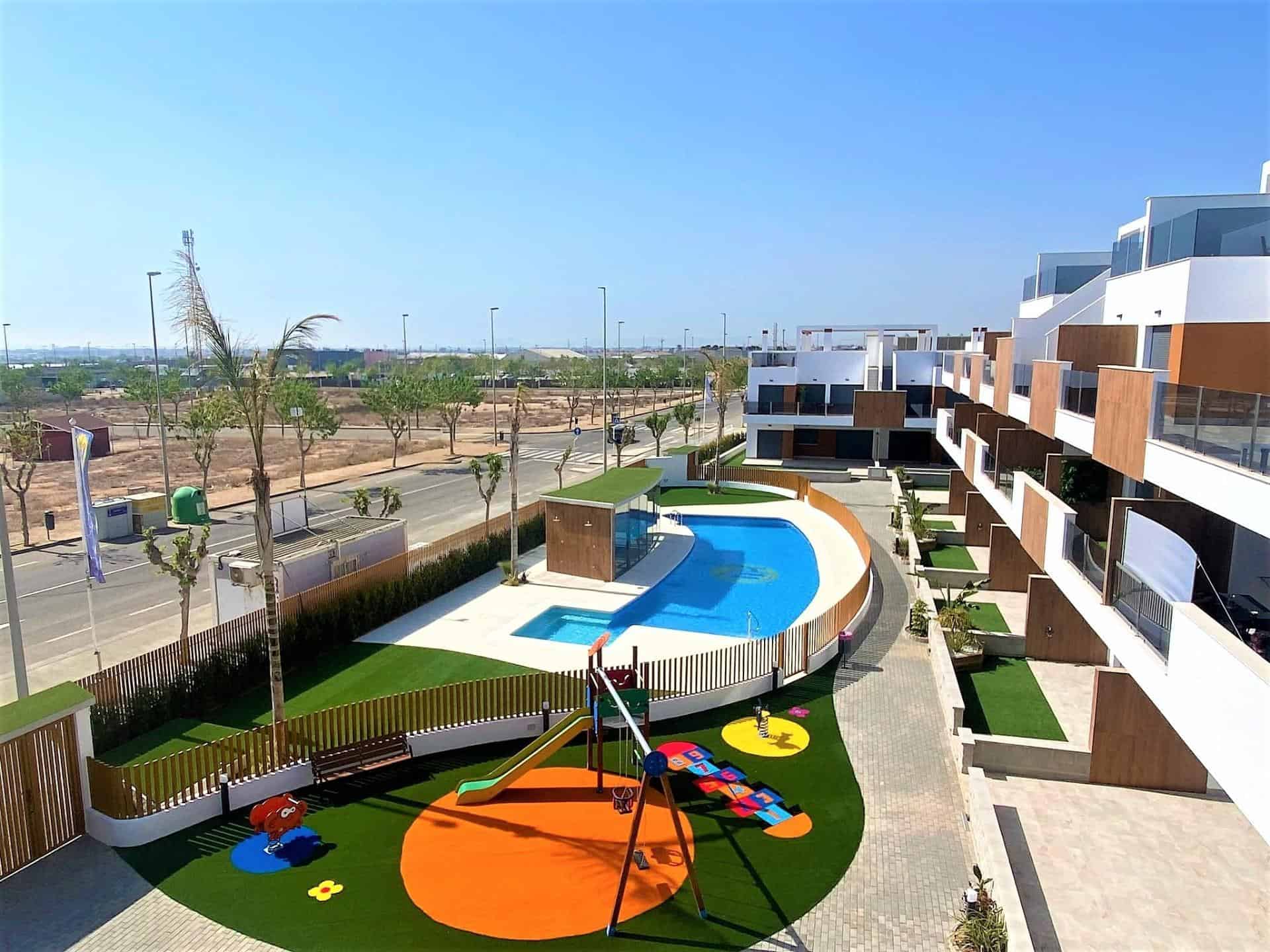 The complex offers a superb communal pool perfect for cooling off from the 325 days of glorious sunshine, a children’s play area and a gym.