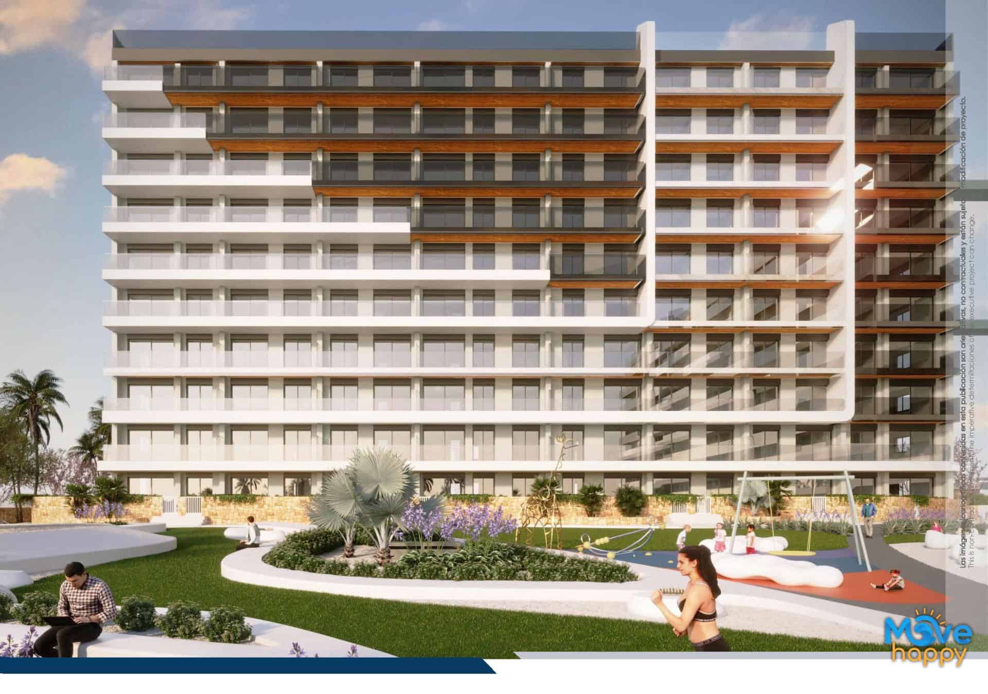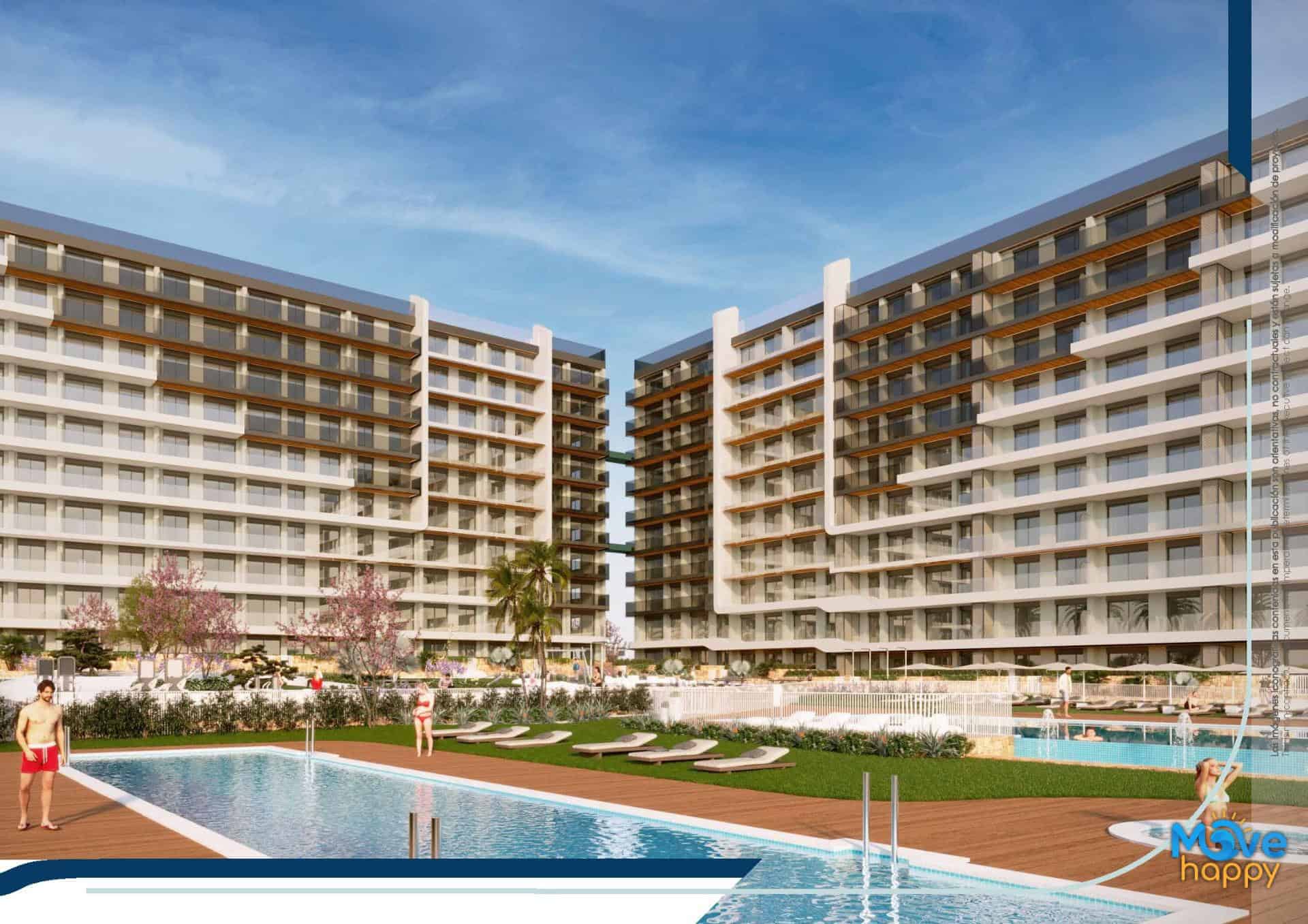 New build family residential resort of 220 apartments in Punta Prima, Torrevieja.