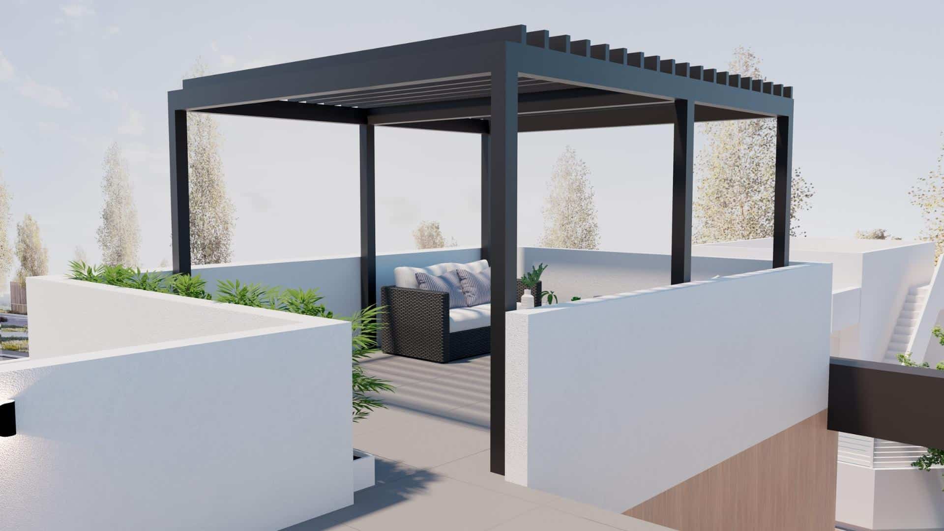 Each townhouse boasts three bedrooms, two bathrooms, a private swimming pool, a spacious terrace, an interior patio, a rooftop solarium, and private parking. The properties are equipped with modern kitchens and bathrooms, pre-installed air conditioning, and high-quality finishes.