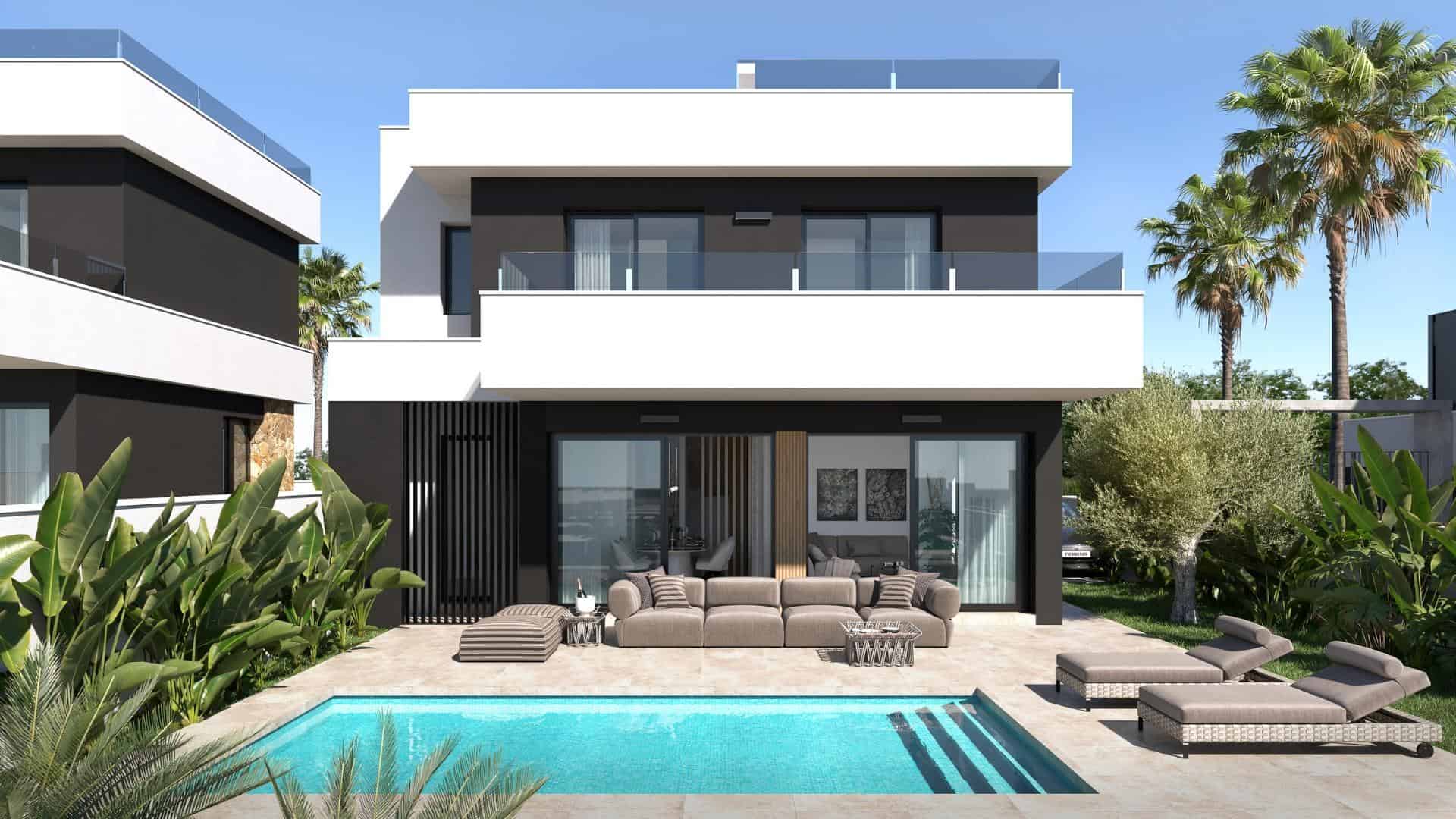 This stunning detached Villa in Ciudad Quesada offers three bedrooms, three bathrooms, and open-plan contemporary living, dining, and kitchen areas. It is available in a one—or two-story layout.