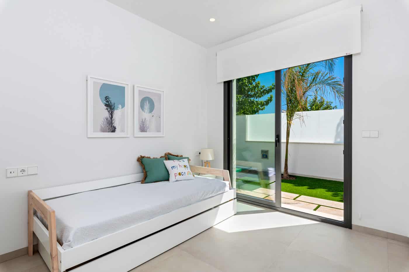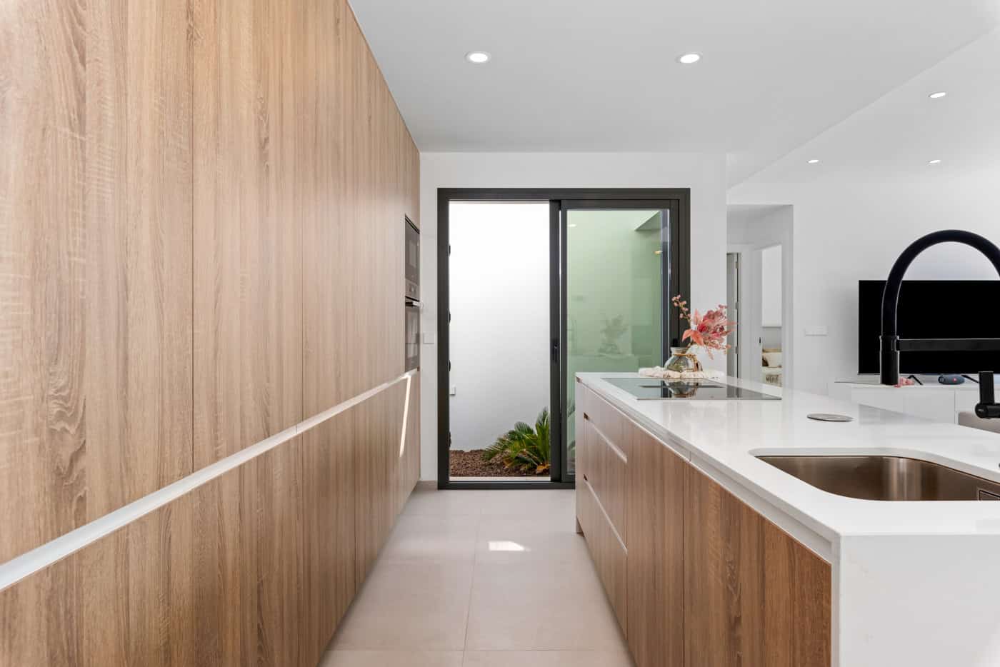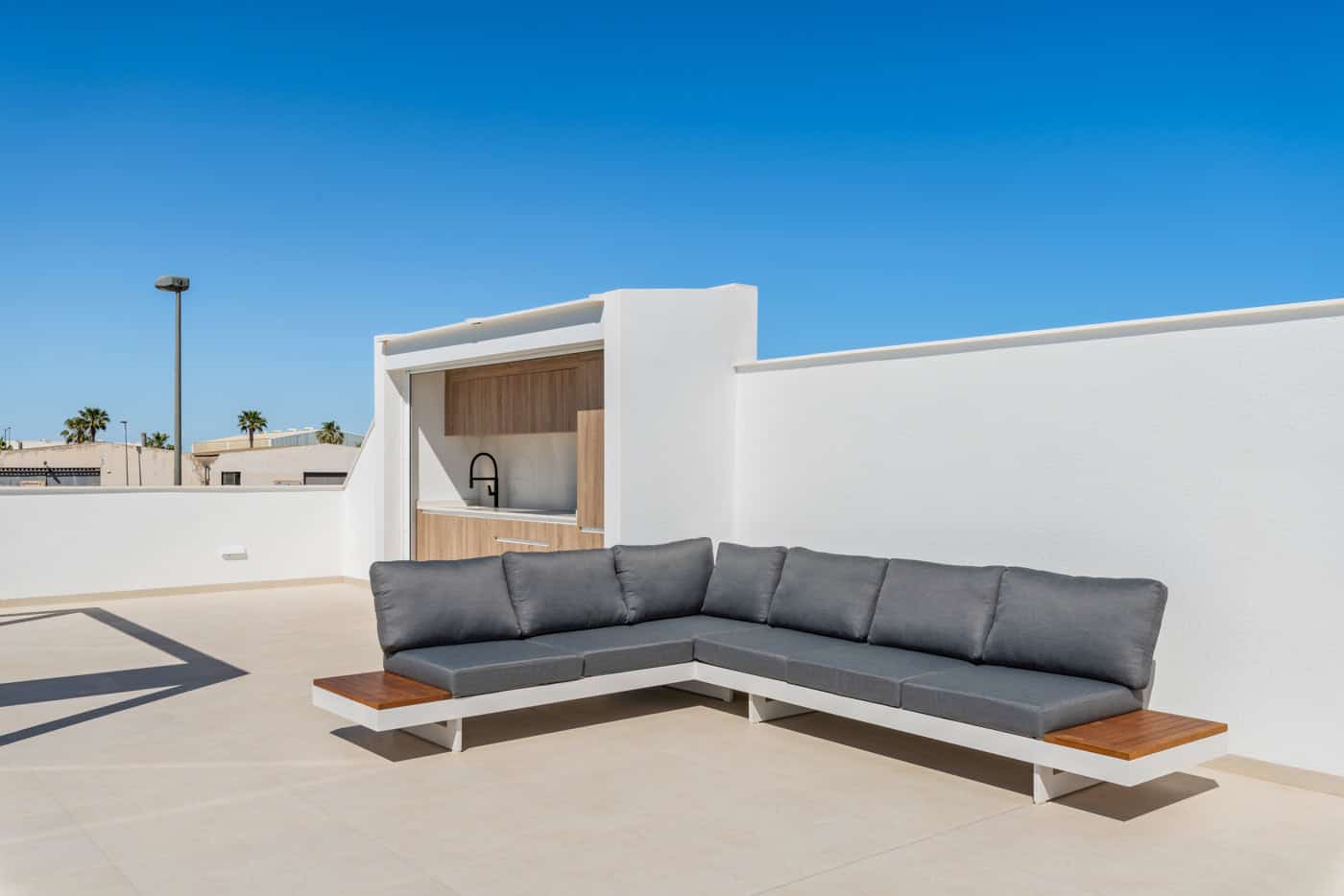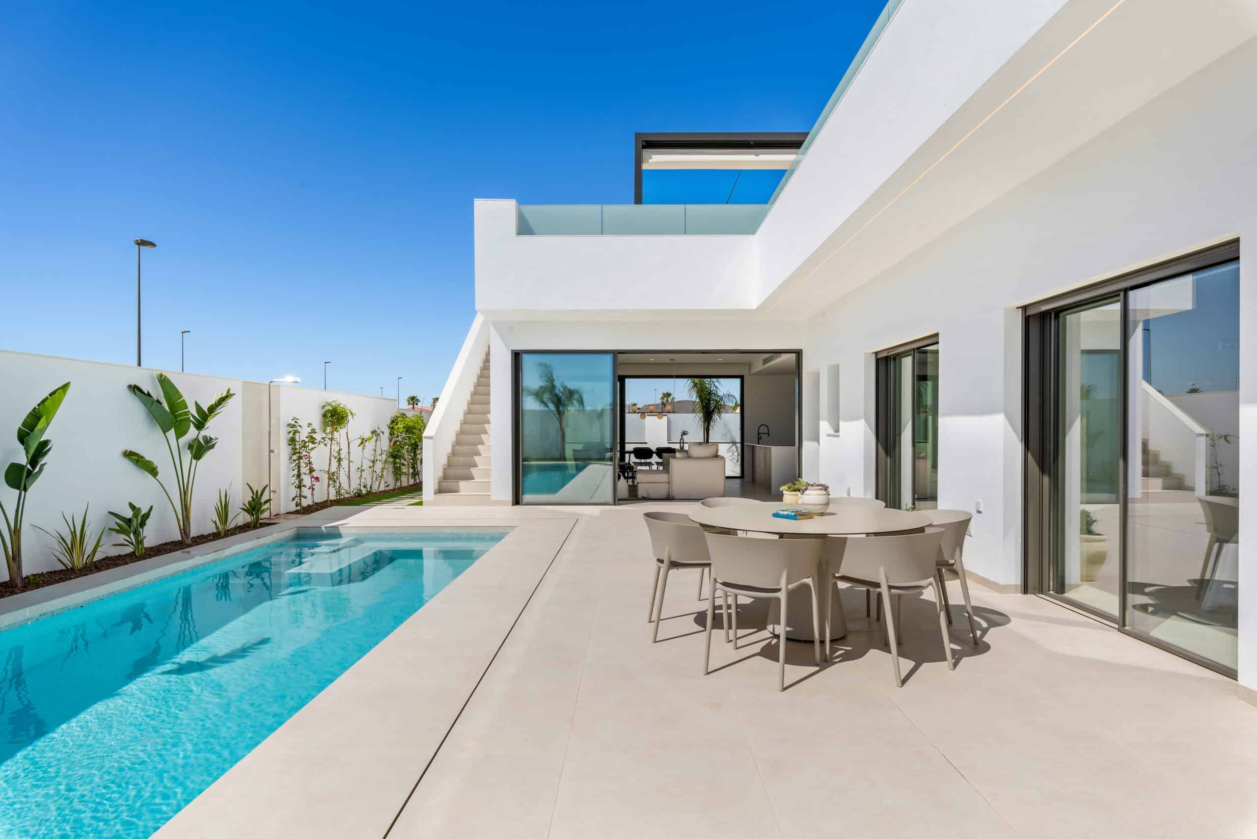 This stunning contemporary villa on a large 308m2 plot in Los Alcazares offers 3 bedrooms and 3 bathrooms, open plan living, dining and kitchen areas.