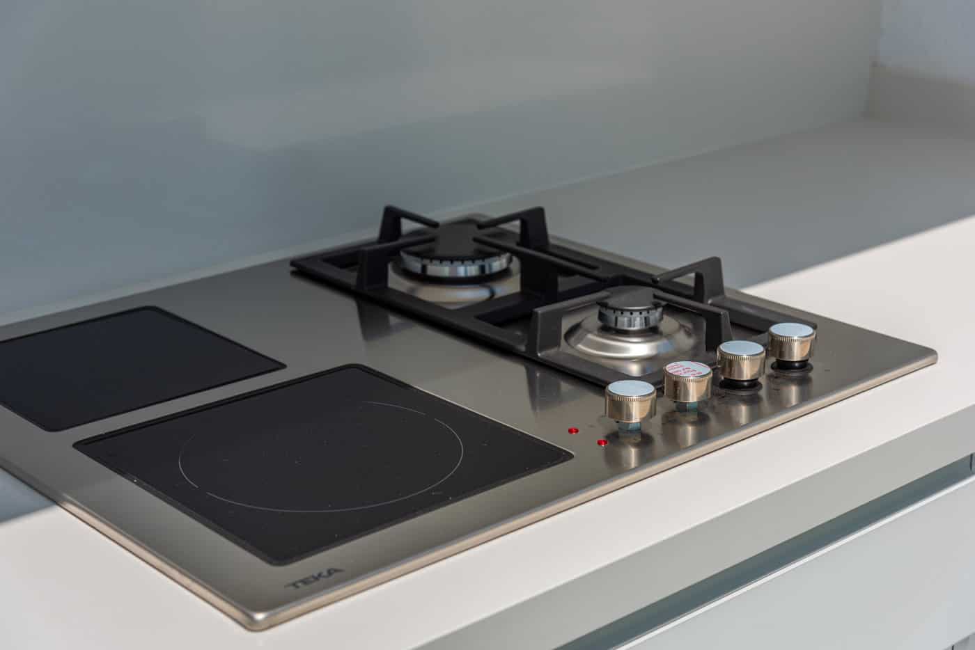The fully fitted kitchen is available in white gloss or wood colour and includes an Induction hob with an integrated extractor fan, oven, microwave, washing machine, integrated refrigerator and integrated dishwasher.