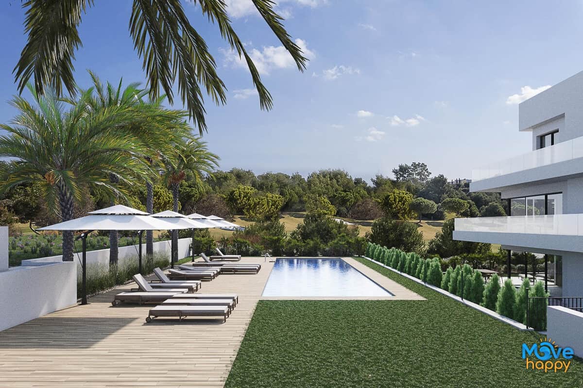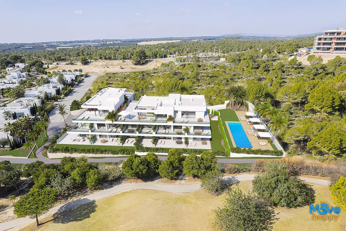 New build development of luxury apartments with huge terraces overlooking the surrounding natural green area and the golf course.