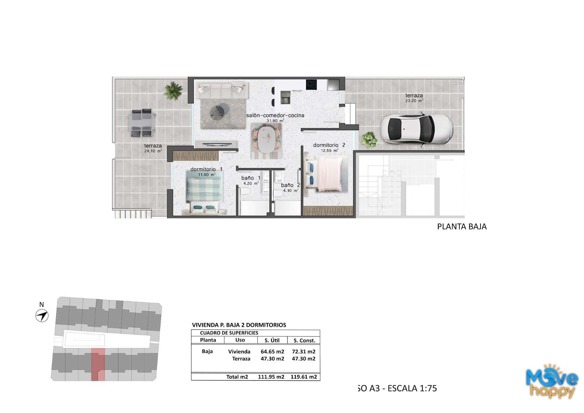 All of our new build properties are offered with our unique Movehappy package. This gives you a total saving of up to €18,000. The package consists of Spanish legal services and a furniture voucher.