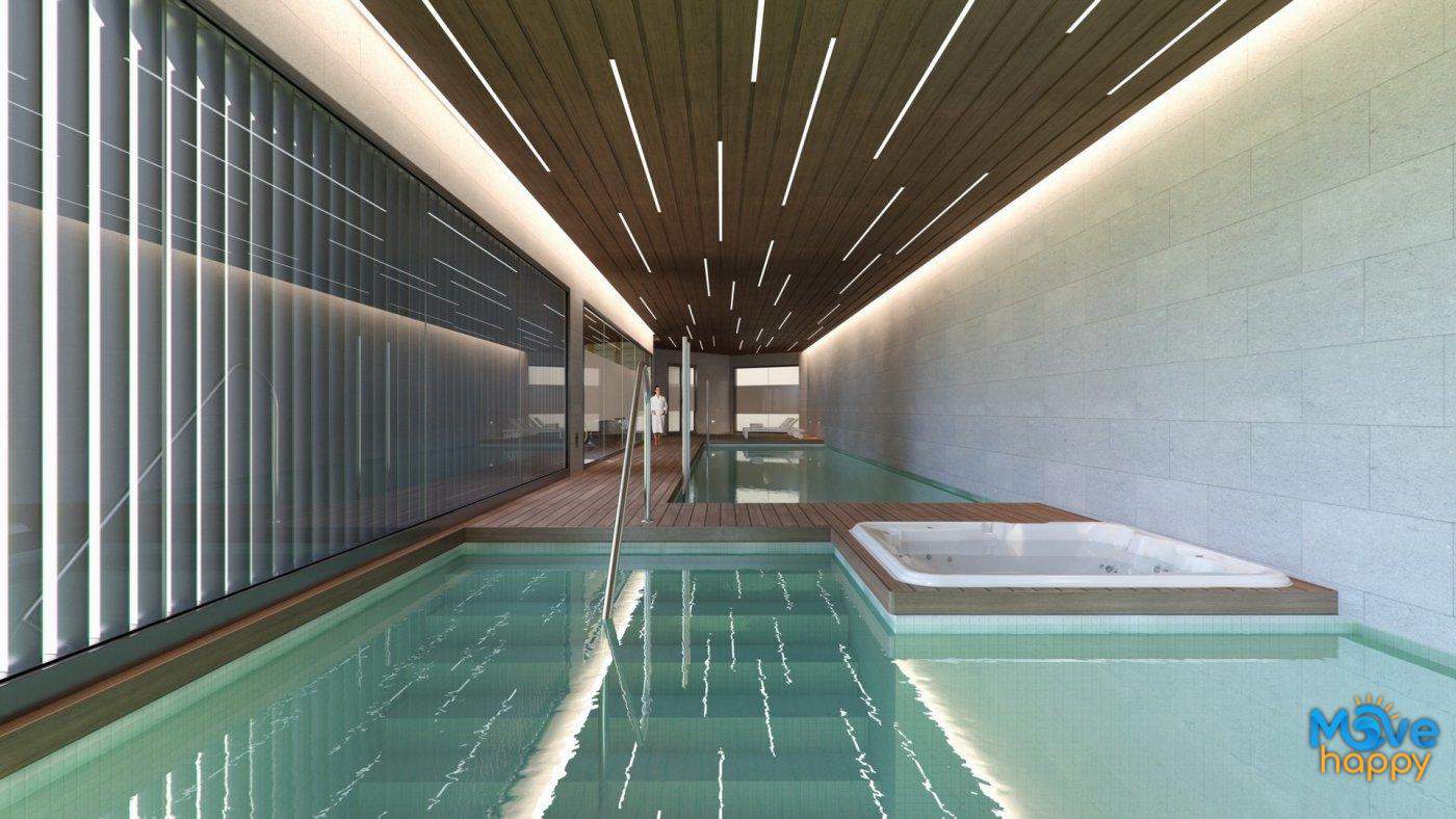 You will be able to enjoy green areas for strolling and sunbathing. The communal areas include a large indoor heated swimming pool, a chill out area on the roof terrace, as well as a sports area to enjoy outdoor exercise, a gym, a children’s play area and a large outdoor swimming pool together with a smaller one for children and a gourmet room. And because we know you’ll love cycling in the area, we’ve set aside space for bike storage.
