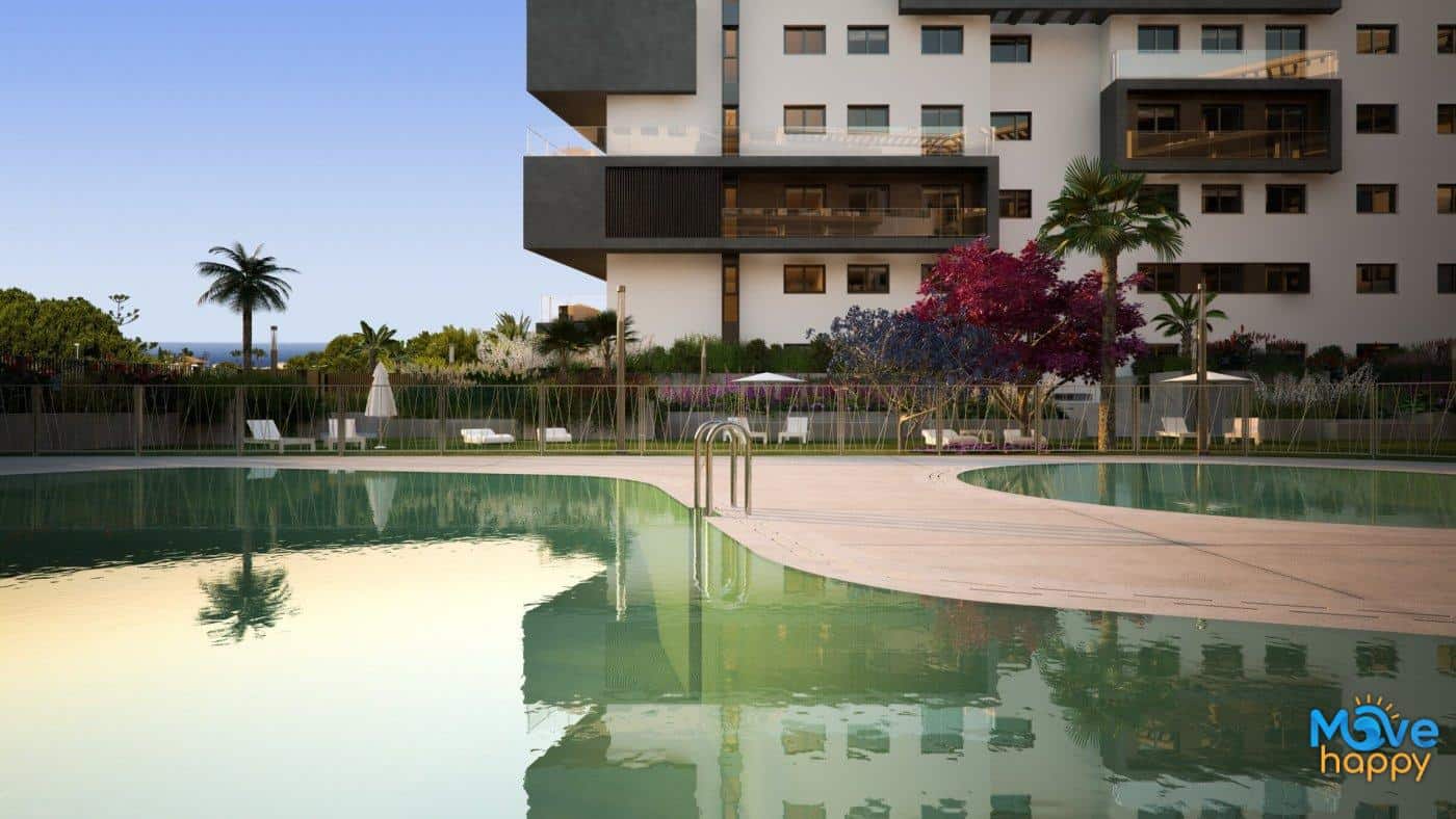 A 3-bedroom flat with a large terrace, a kitchen equipped with modern appliances, the most exclusive details and communal areas designed for the enjoyment of the whole family. Living in this residential is to feel the Mediterranean in every room of the house.