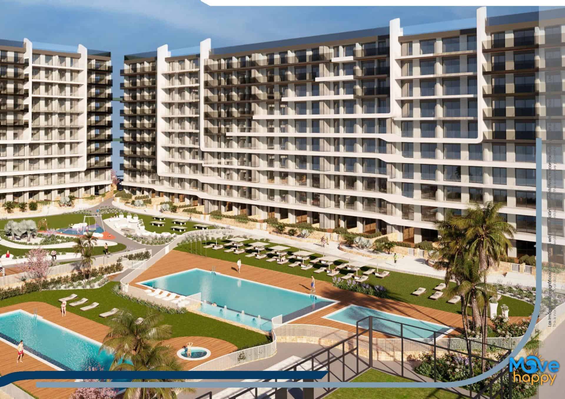 New build family residential resort of 220 apartments in Punta Prima, Torrevieja.