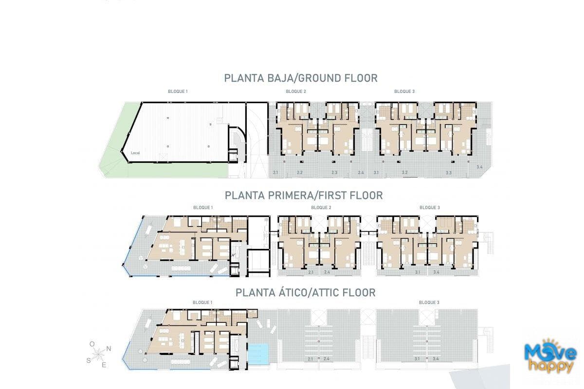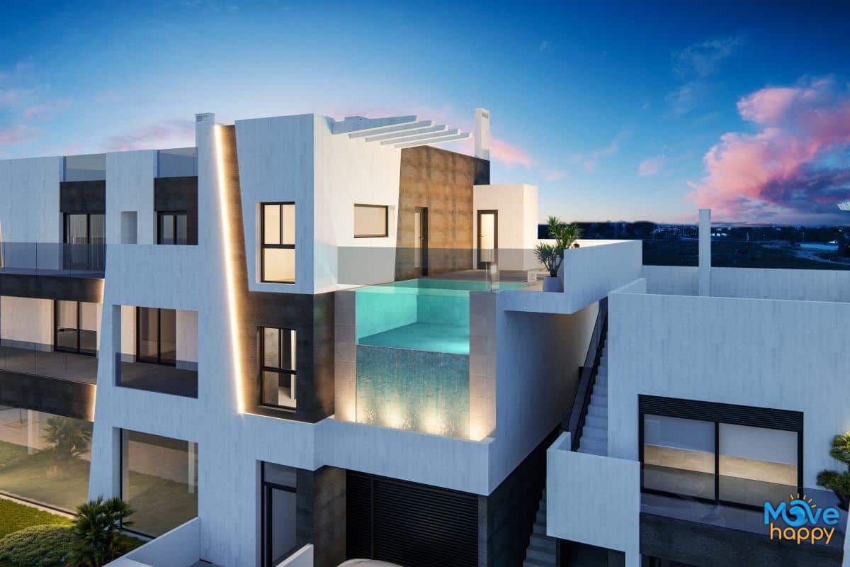 New Build modern-style residential complex is made up of 8 bungalows, apartments and penthouses with 2 and 3 bedrooms, with a large garden or solarium area.