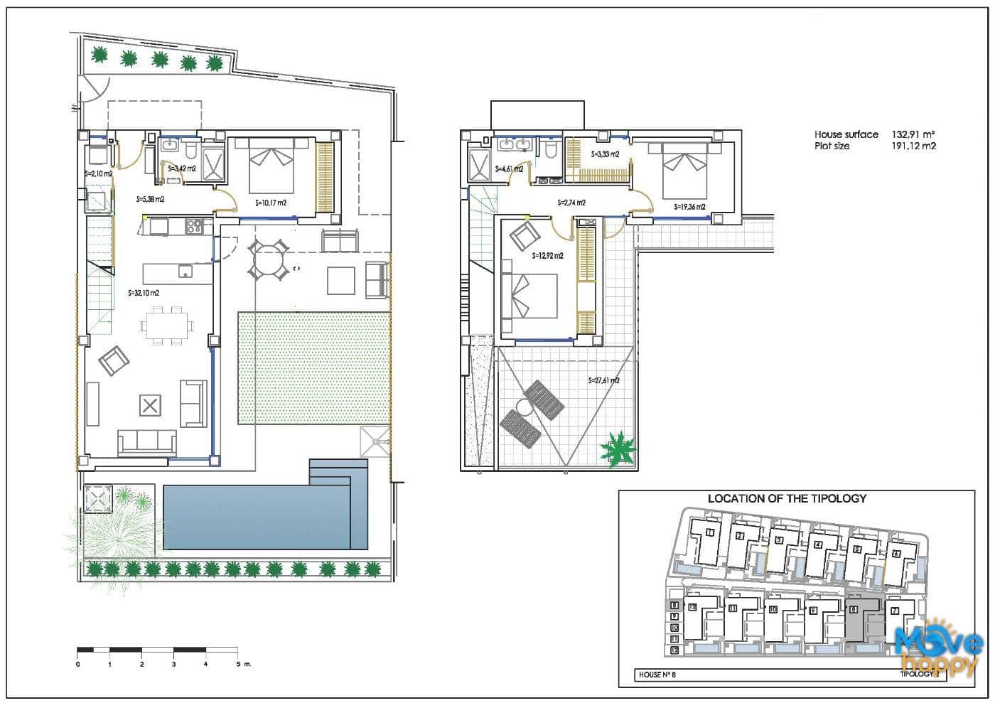 These beautiful villas built over two floors, offer 3 bedrooms, 2 bathrooms, open plan kitchen with spacious living room, fitted wardrobes, terrace, private garden with the pool and parking space.