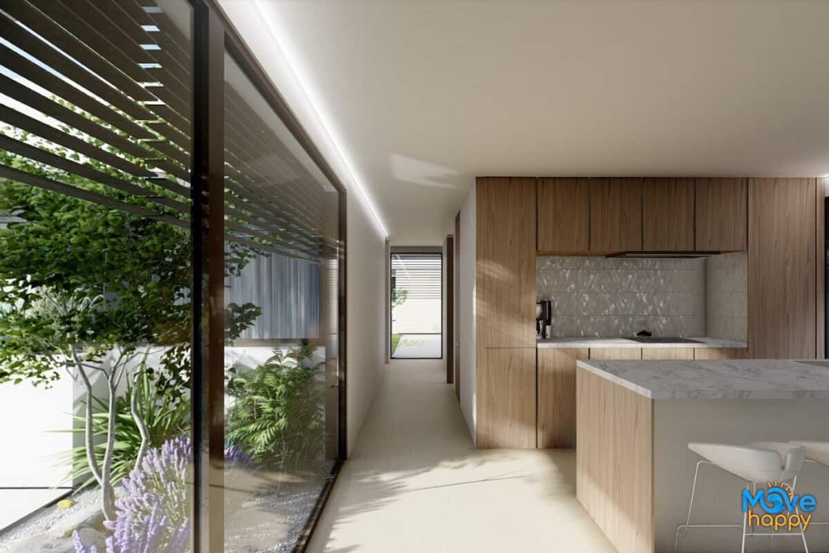 These beautiful one level L shape villas offer open plan contemporary living , dining and kitchen areas, 3 bedrooms and 2.5 bathrooms, all finished with superior fixtures and fittings and attention to detail. The villas have been designed to maximise comfort privacy and efficiency, with a high efficiency rating, acoustic and thermal isolation. The oversized windows flood the villa with natural light and provide superb golf, country and mountain views.