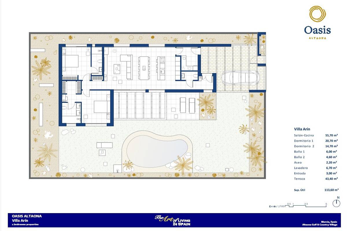 We are pleased to offer this stunning new build residencial ´Oasis` offering beautiful Mediterranean villas in Altaona Golf Resort Murcia nestled in a tranquil natural golf environment. This residencial offers 2 to 6-bedroom properties, all on large plots that respect the natural environment. There is also the option of double plots for bespoke design villas.